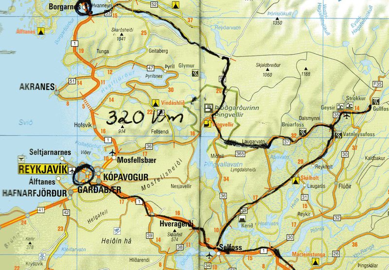 Heute begeben wir uns auf die klassische Touristenroute. Als erstes fahren wir zum Gullfoss. Gott sei Dank sind wir vor den Bussen diverser Kreuzfahrtschiffe da. Danach geht es zum Geysir. Hier riecht es schon ein wenig nach Schwefel . Wir haben Glück und können das Schauspiel der Eruption zweimal hautnah erleben. Nach einem superleckeren Mittagessen geht es weiter zum Pingvellir Nationalpark . Die Landschaft ist wunderschön. Das Erlebnis zwischen der amerikanischen und eurasischen Kontinentalplatte zu stehen ist schon sehr speziell. Nach einigen Wirren finden wir dann auch uns Hotel bei Bourganes . Es liegt abseits der Straße und ist über eine Schotterpiste zu erreichen. Enskuhuisin ist ein Traum . Ein Bauernhaus mit knarrenden Diehlen und liebevoll eingerichtet. Wir entscheiden uns dort auch zu Abend zu essen. Das war die beste Entscheidung des Tages. Wir lernen ein deutsches Paar kennen, die auf der gleichen Route wie wir unterwegs sind und verabreden uns die Hochlandtour gemeinsam zu fahren. Danach haben wir mit allen Gästen Fußball in der "guten Stube" geguckt. Ein echt toller Abend.