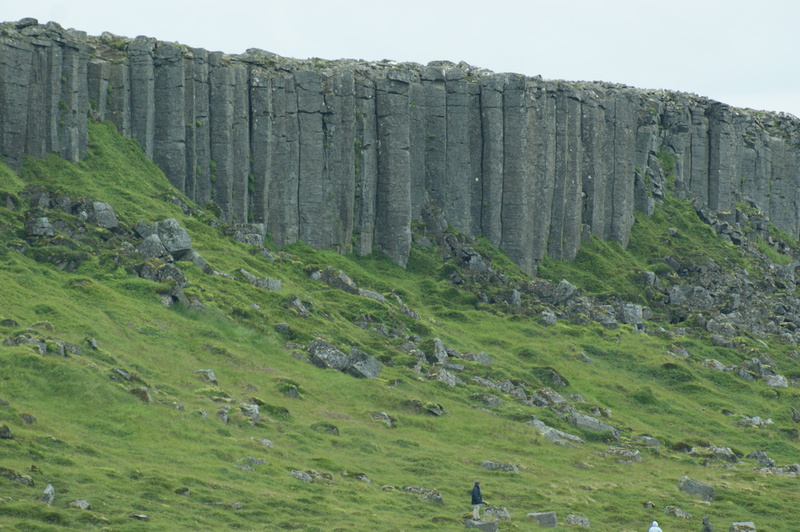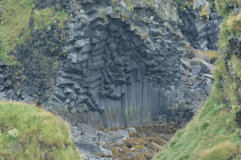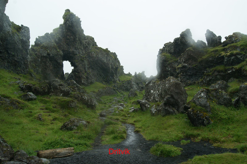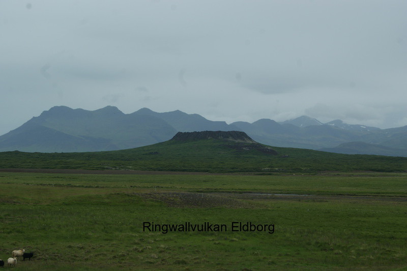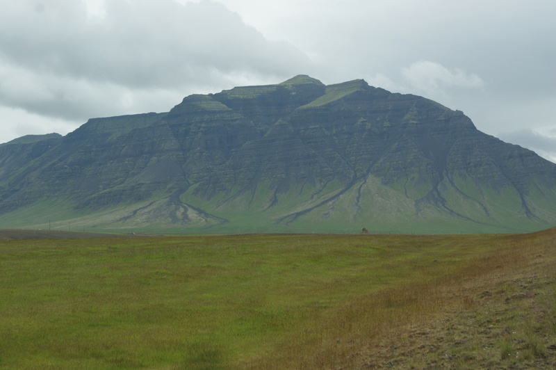 Um 9.00 Uhr verlassen wir unser schönes Hotel. Ein isländisches Klischee erfüllt sich: das Wetter! Es regnet genauer gesagt es schüttet. Wir fahren die Küstenstrasse rund um Snäfells entlang. Wir sind ganz alleine auf der Straße. Nach 10 Minuten kommt uns das erste Auto entgegen. Bei mir stellt sich so etwas wie ein Glücksgefühl und Ruhe ein. Ich bin angekommen und möchte nirgendwo anders sein. Ich verstehe jetzt auch was mit "dramatischen" Landschaften gemeint ist. Auf dem Weg zum Lavastrand Dritvik entdecken wir den Vulkankrater Eldborg, wo Jules Vernes Geschichte zm Mittelpunkt der Erde beginnt. Am Dritvik angekommen