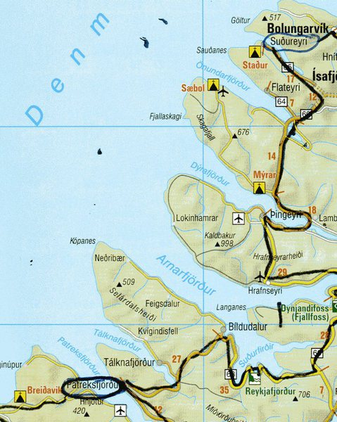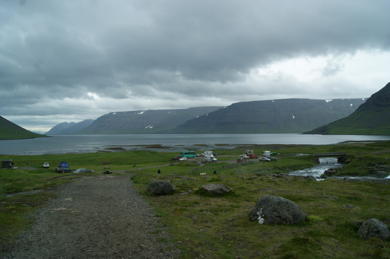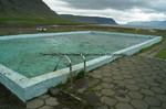 Kurz hinter Bildudalur steht etwas zurückgesetzt von der Straße ein Schwimmbad mitten in der Landschaft. Natürlich halten wir an. Das Wasser ist schön warm. Es gibt ein Umkleidehäuschen mit einem Zettel, daß wir gerne ein paar Kronen für den Erhalt der Anlage spenden können. Alles ist supersauber. Auf der Wiese gibt es noch einen Hotpot mit Badewannentemperratur. Wir sitzen dort ganz alleine drin und gucken über den Fjord. Mehr geht nicht!